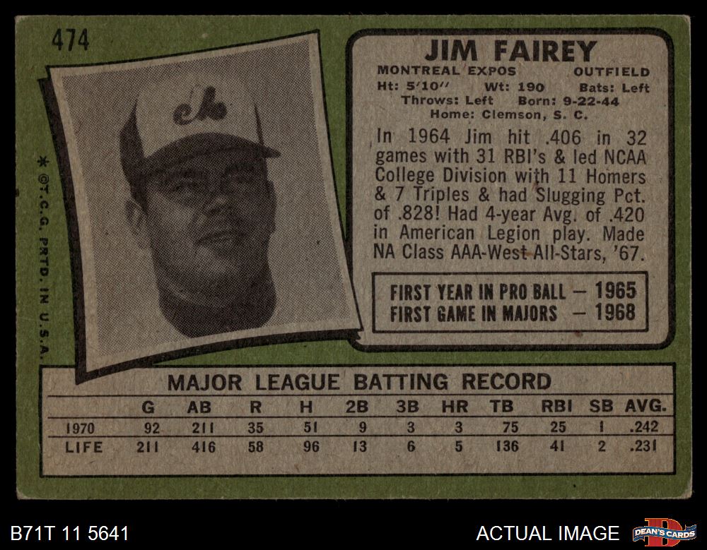 1971 Topps #474 Jim Fairey 4 - VG/EX