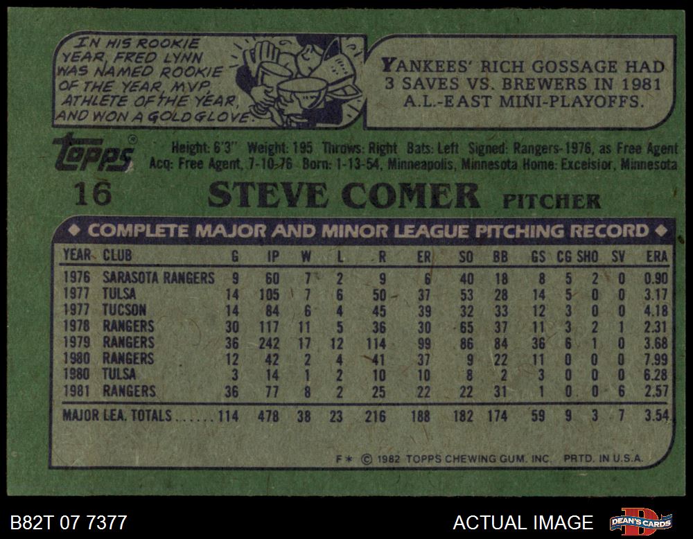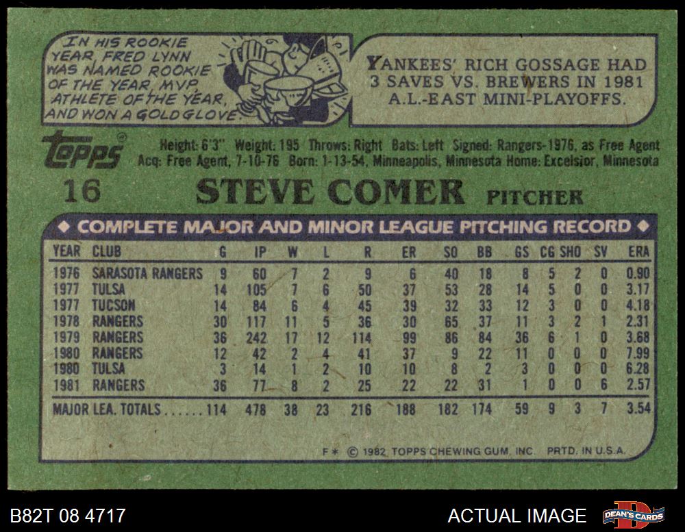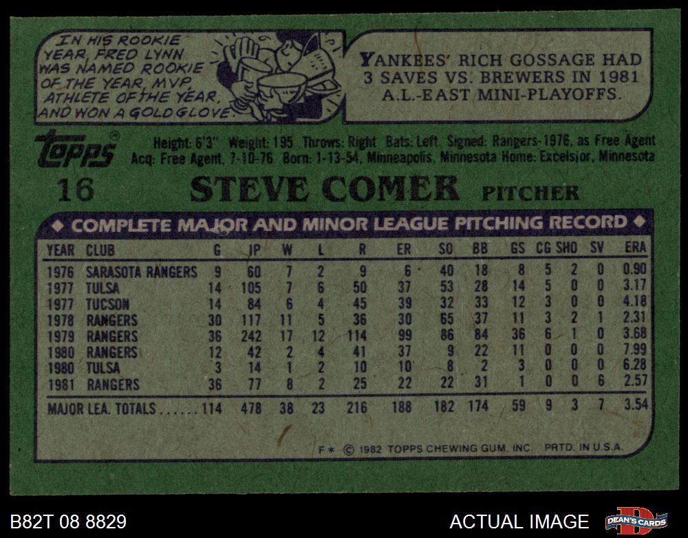1982 Topps #16 Steve Comer 6 - EX/MT
