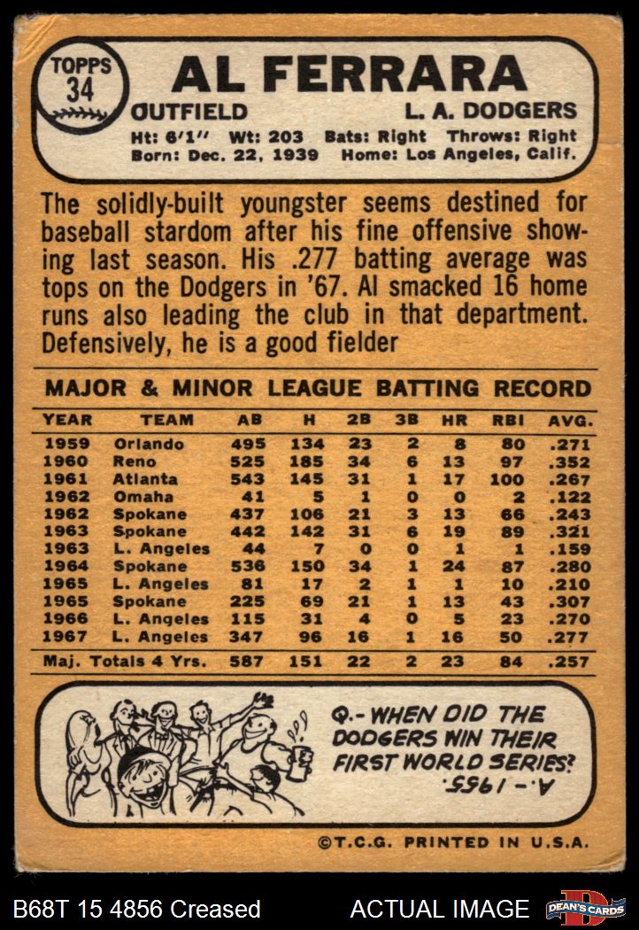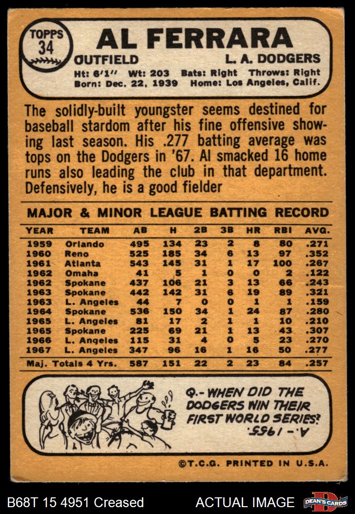 1968 Topps #34 A Al Ferrara