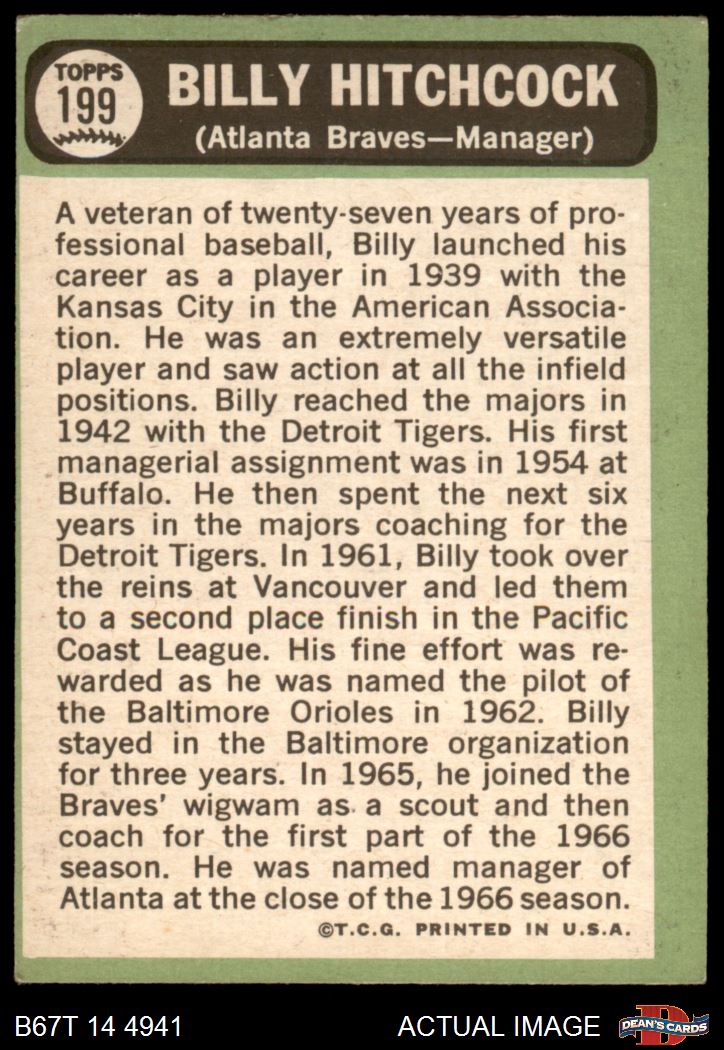 1967 Topps #199 Billy Hitchcock 2 - GOOD