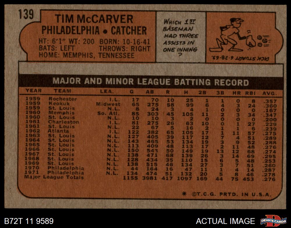 1972 Topps #139 Tim McCarver 4 - VG/EX