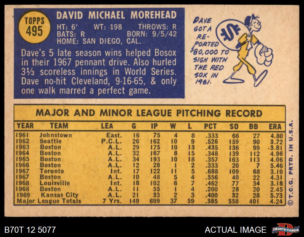 1970 Topps #495 Dave Morehead 4 - VG/EX