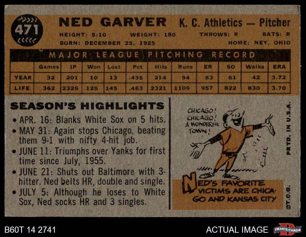 1960 Topps #471 Ned Garver 4 - VG/EX