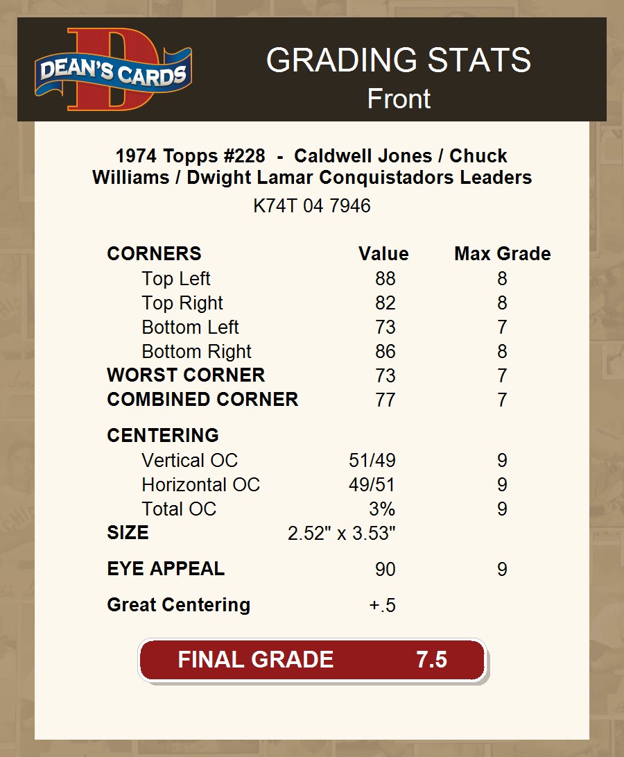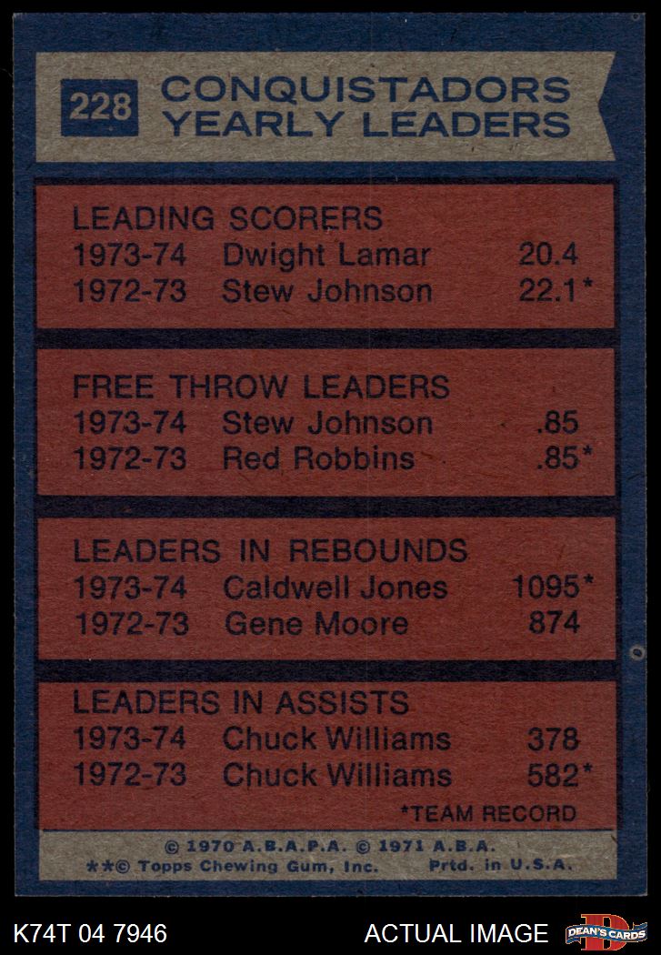 1974 Topps #228 - Caldwell Jones / Chuck Williams / Dwight Lamar Conquistadors Leaders 7.5 - NM+
