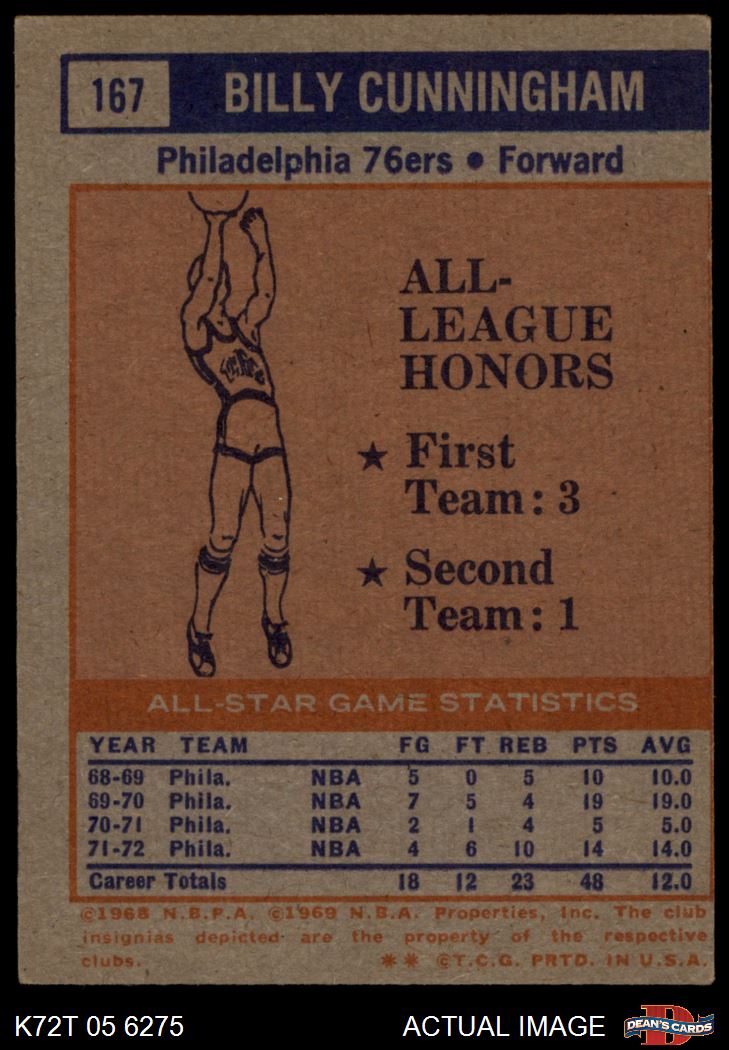 1972 Topps #167 - Billy Cunningham NBA All-Star - 2nd Team 3 - VG
