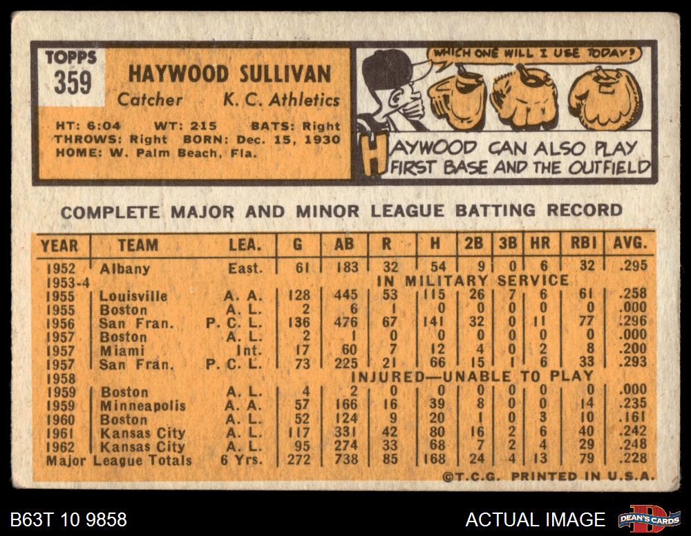 1963 Topps #359 Haywood Sullivan 3 - VG