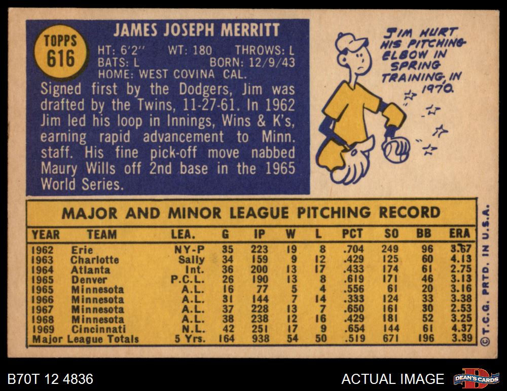 1970 Topps #616 Jim Merritt 6 - EX/MT