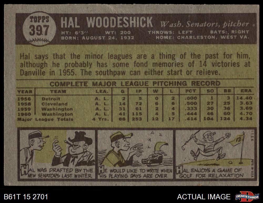 1961 Topps #397 Hal Woodeshick