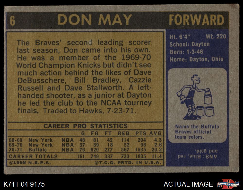 1971 Topps #6 Don May