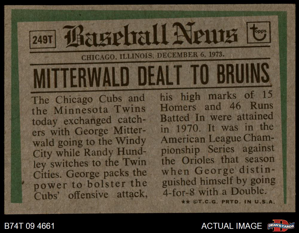 1974 Topps Traded #249 T - George Mitterwald Traded 5 - EX