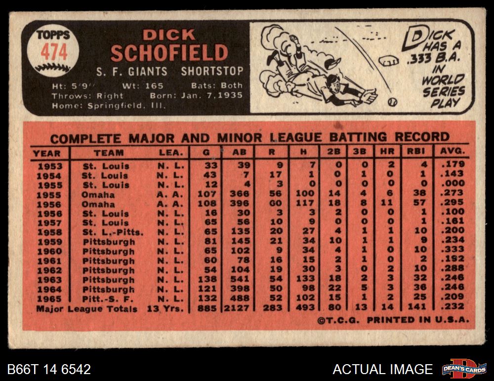 1966 Topps #474 Dick Schofield 2 - GOOD
