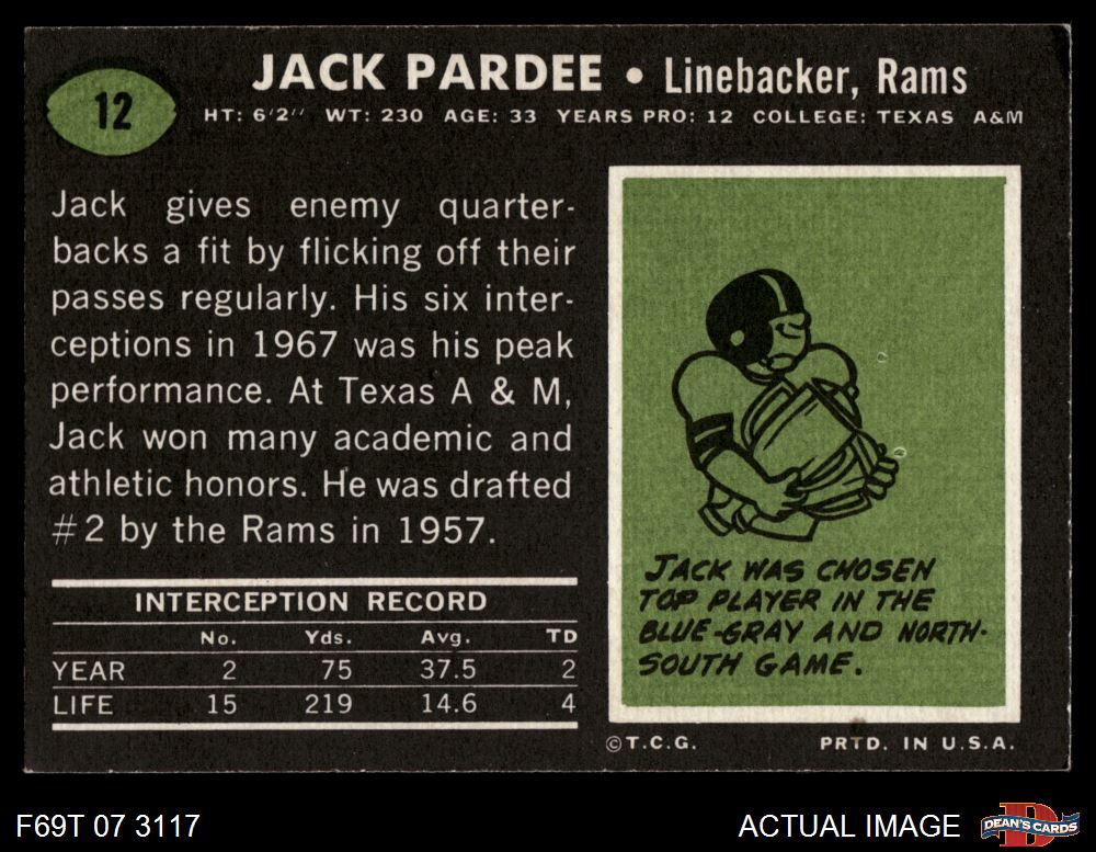1969 Topps #12 Jack Pardee 4 - VG/EX