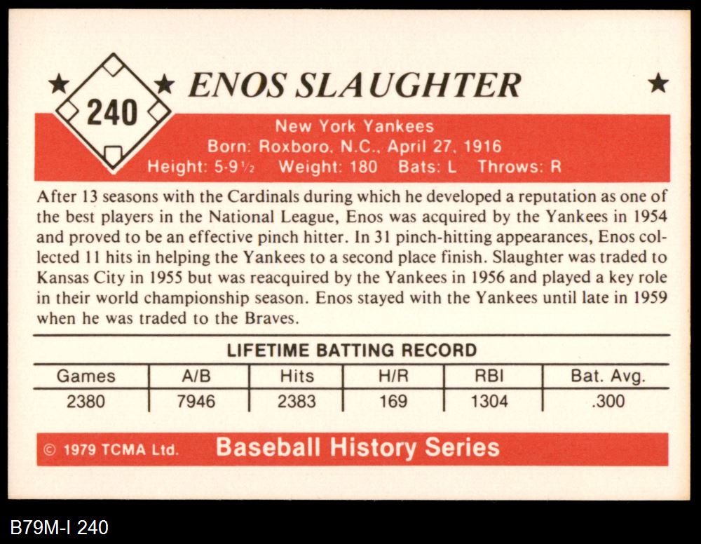 1979 TCMA The 1950's #240 Enos Slaughter