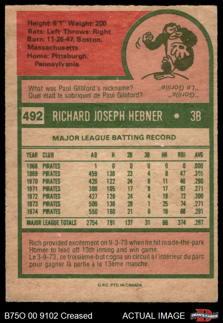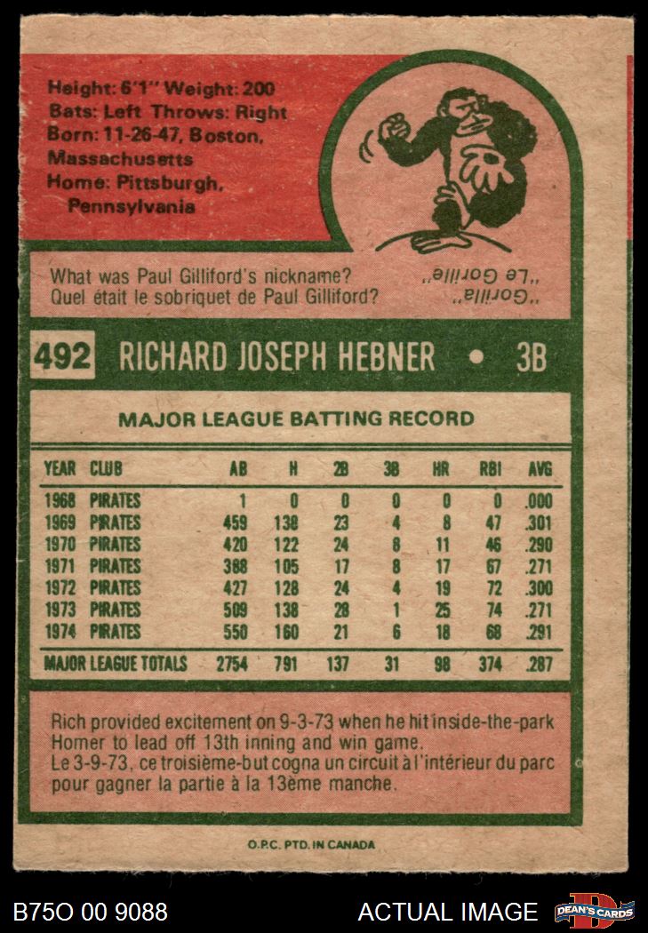 1975 O-Pee-Chee #492 Rich Hebner Front Thumbnail