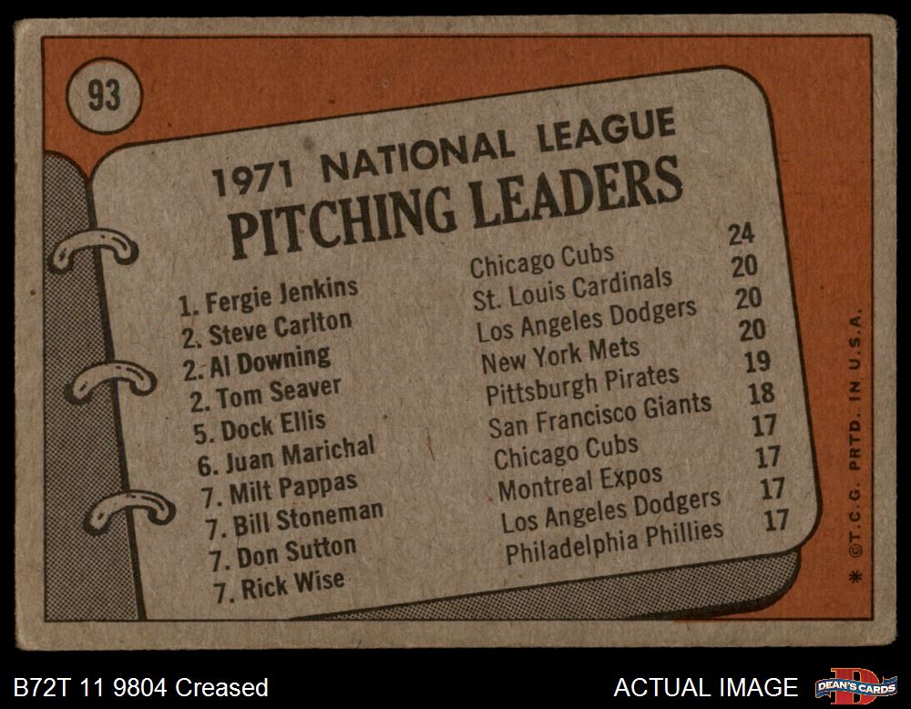 1972 Topps #93 - Steve Carlton / Fergie Jenkins / Tom Seaver / Al Downing NL Pitching Leaders 1.5 - FAIR