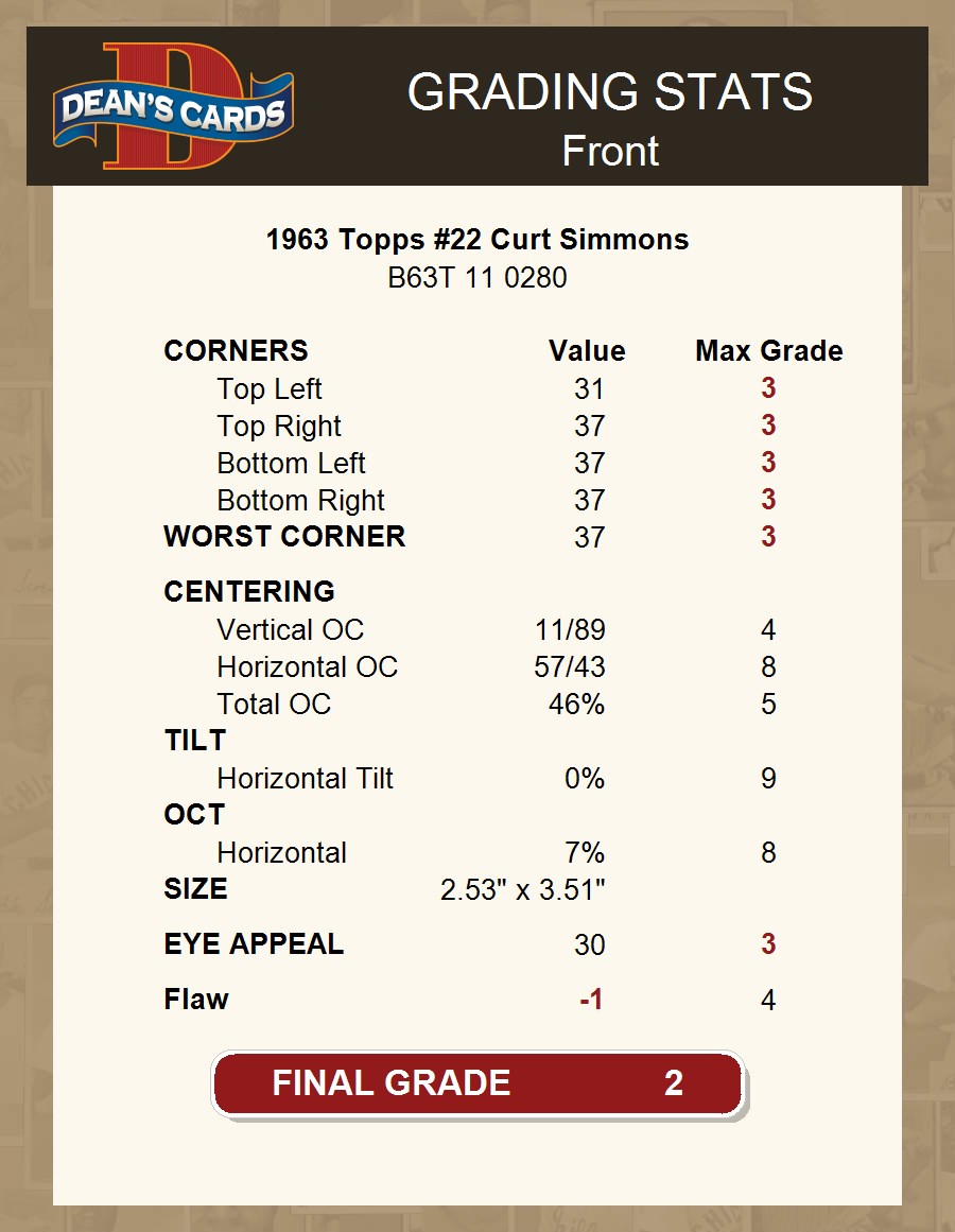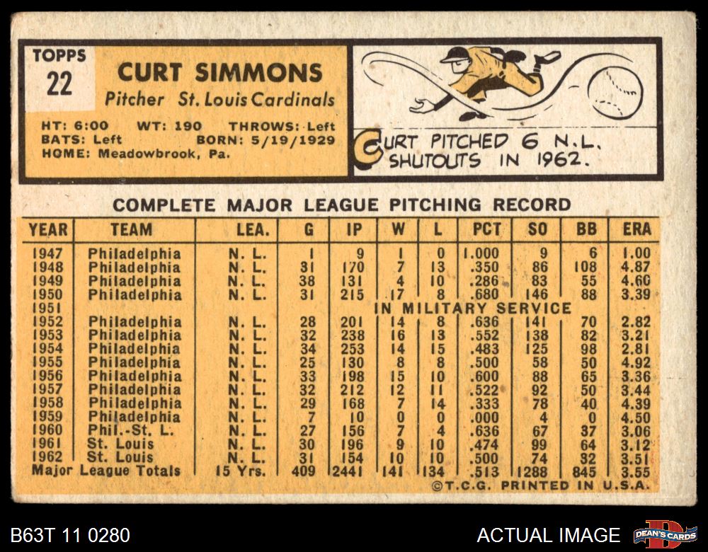 1963 Topps #22 Curt Simmons