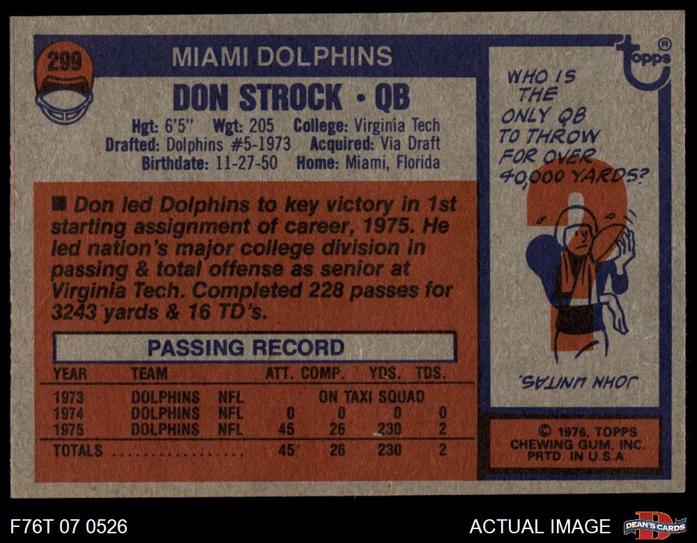 1976 Topps #299 Don Strock 5 - EX