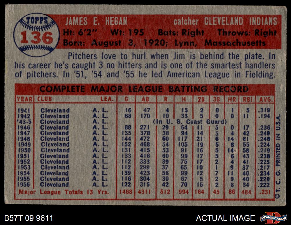 1957 Topps #136 Jim Hegan 3.5 - VG+