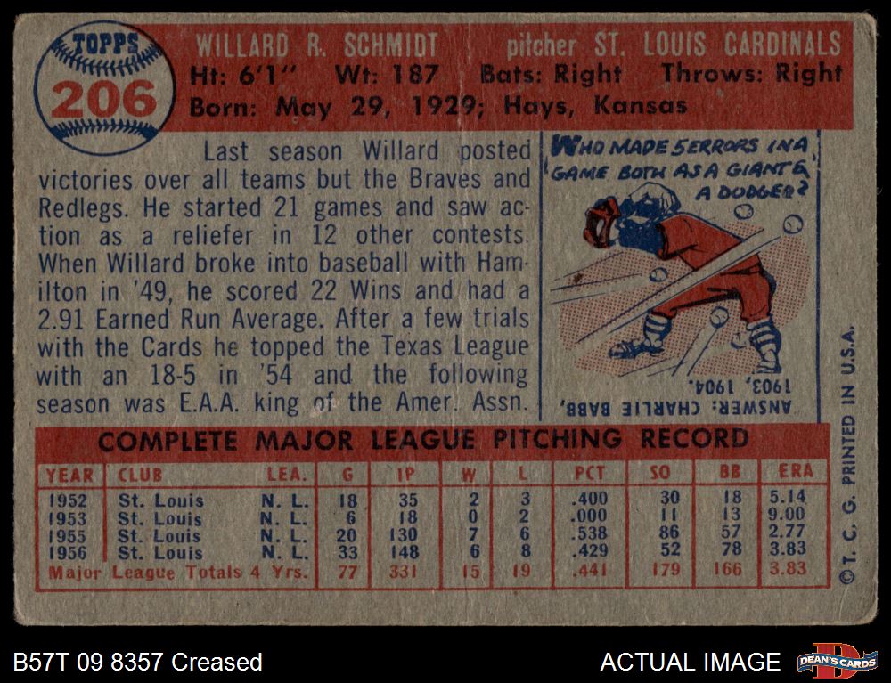 1957 Topps #206 Willard Schmidt 1.5 - FAIR