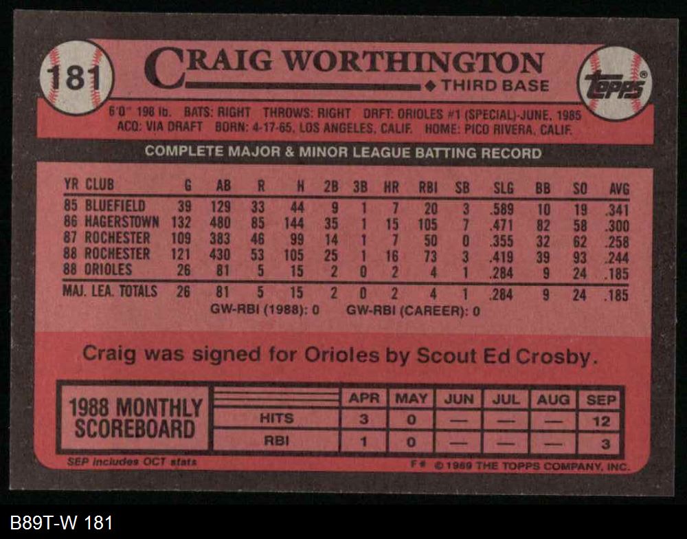1989 Topps #181 Craig Worthington
