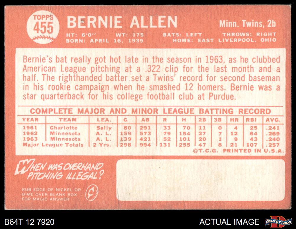1964 Topps #455 Bernie Allen 2 - GOOD