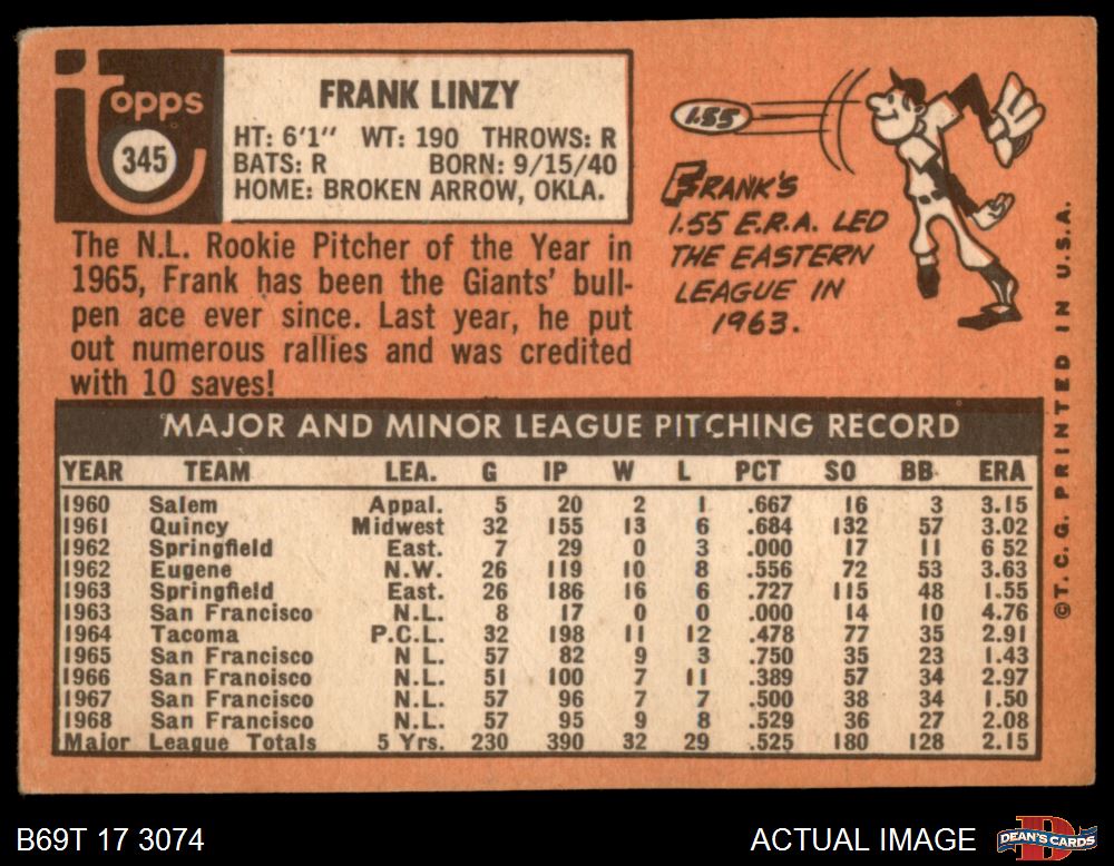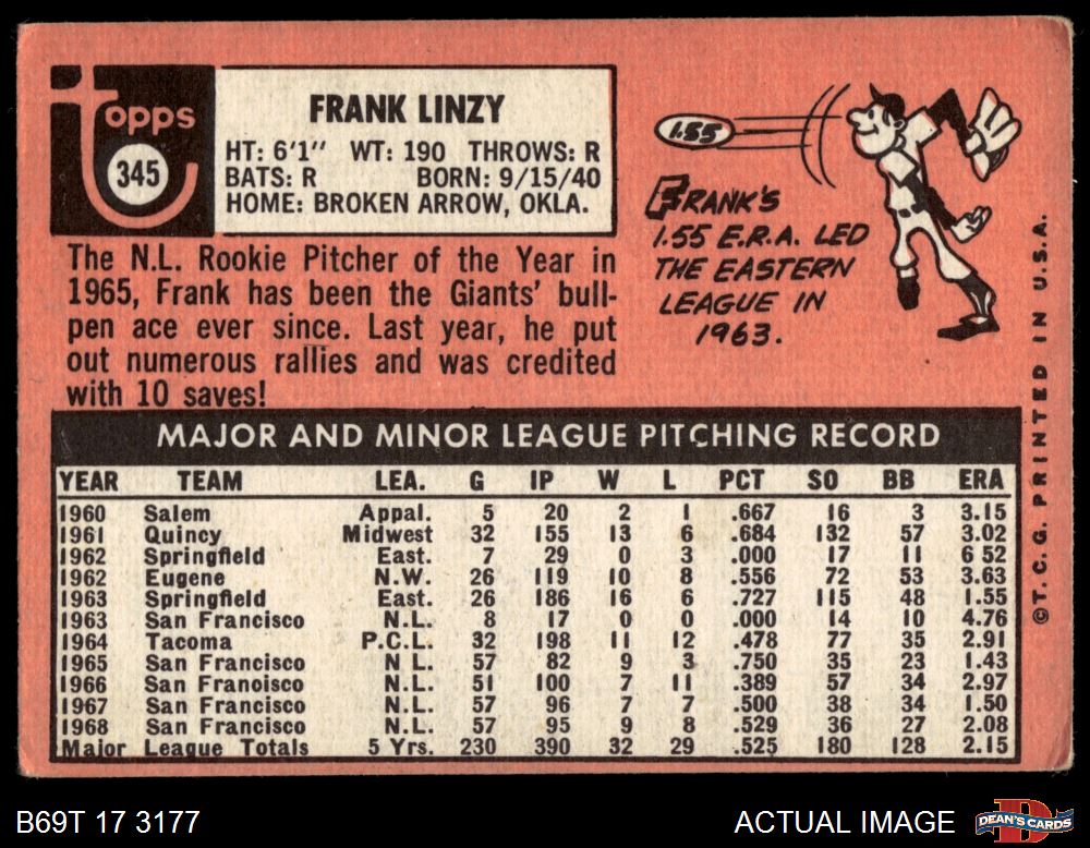 1969 Topps #345 Frank Linzy 2 - GOOD