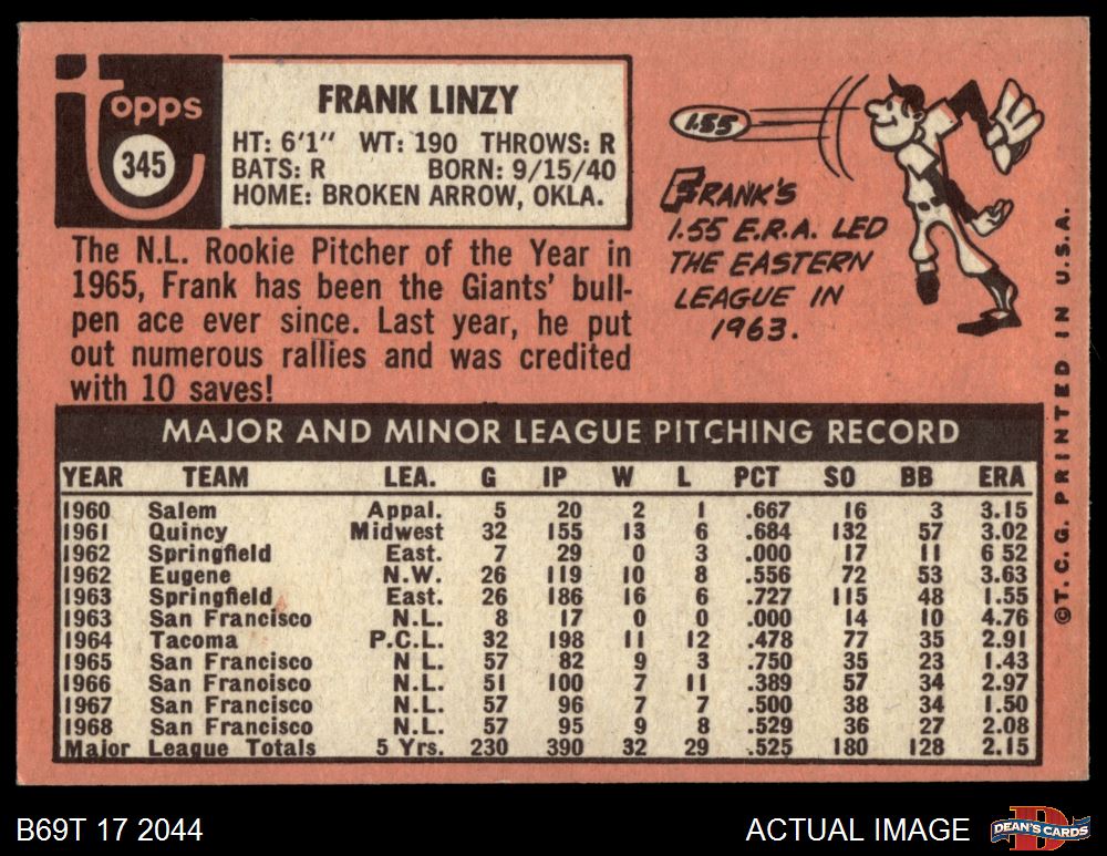 1969 Topps #345 Frank Linzy 4 - VG/EX