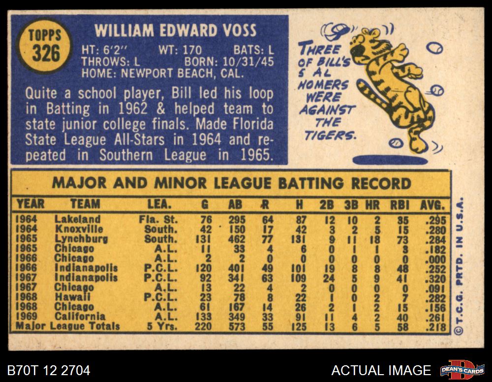 1970 Topps #326 Bill Voss 7 - NM