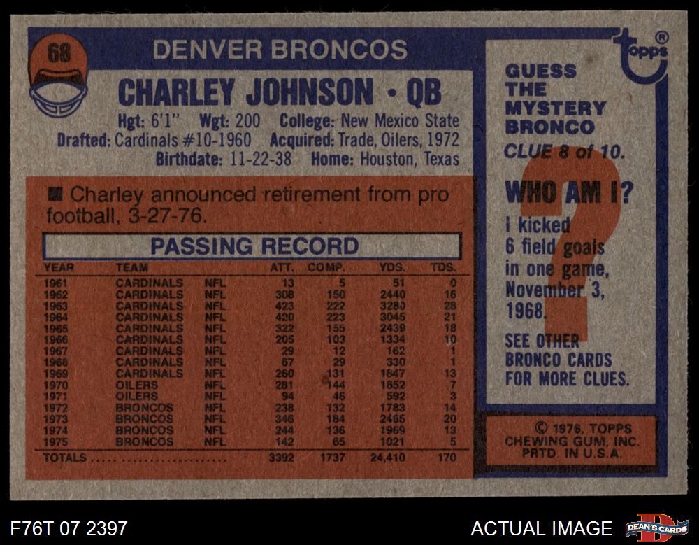 1976 Topps #68 Charlie Johnson 5 - EX