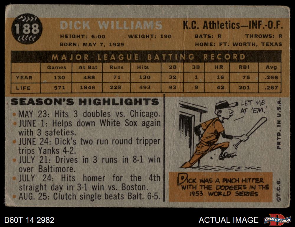 1960 Topps #188 Dick Williams
