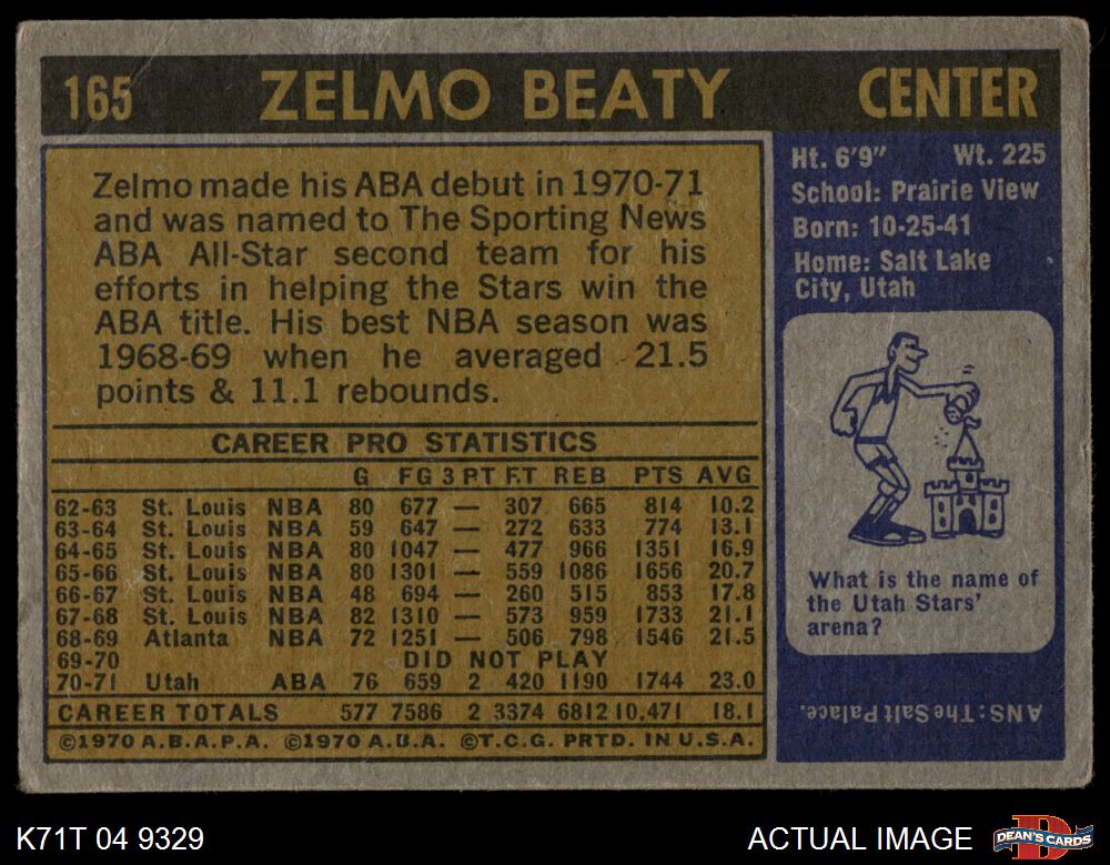 1971 Topps #165 Zelmo Beaty 1 - POOR