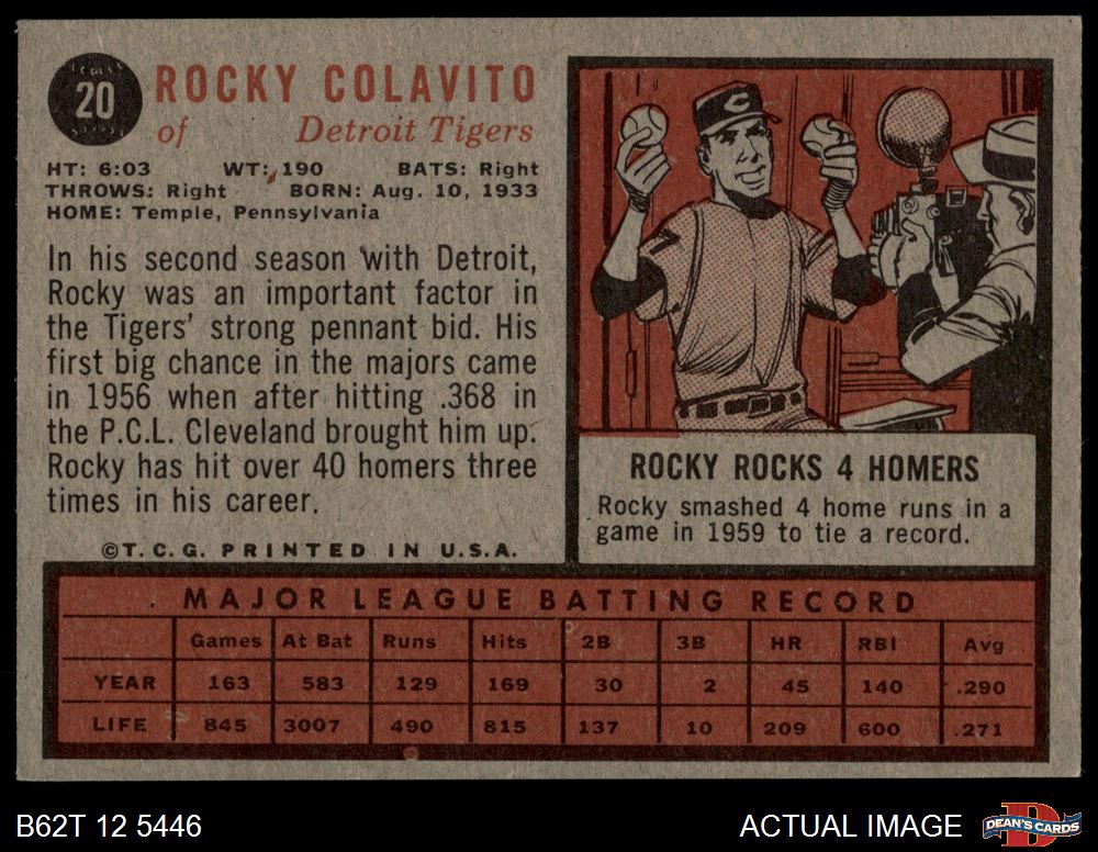 1962 Topps #20 Rocky Colavito 4.5 - VG/EX+