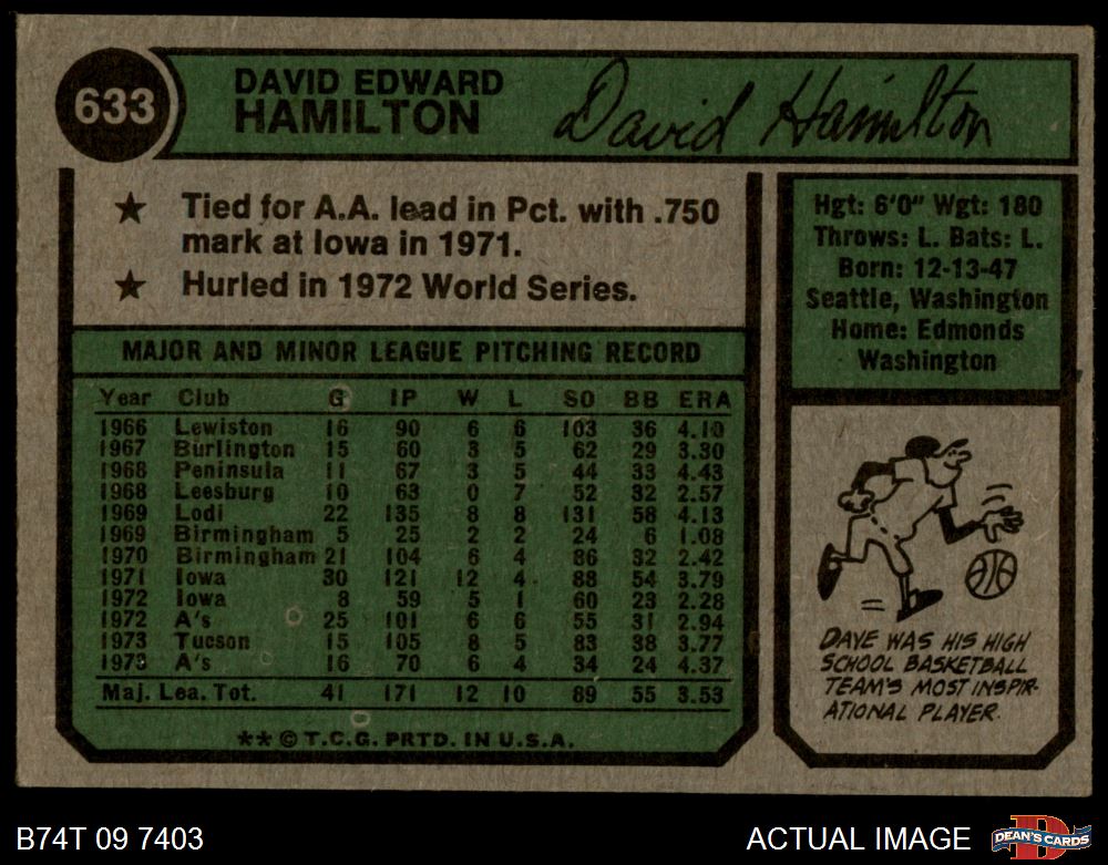 1974 Topps #633 Dave Hamilton