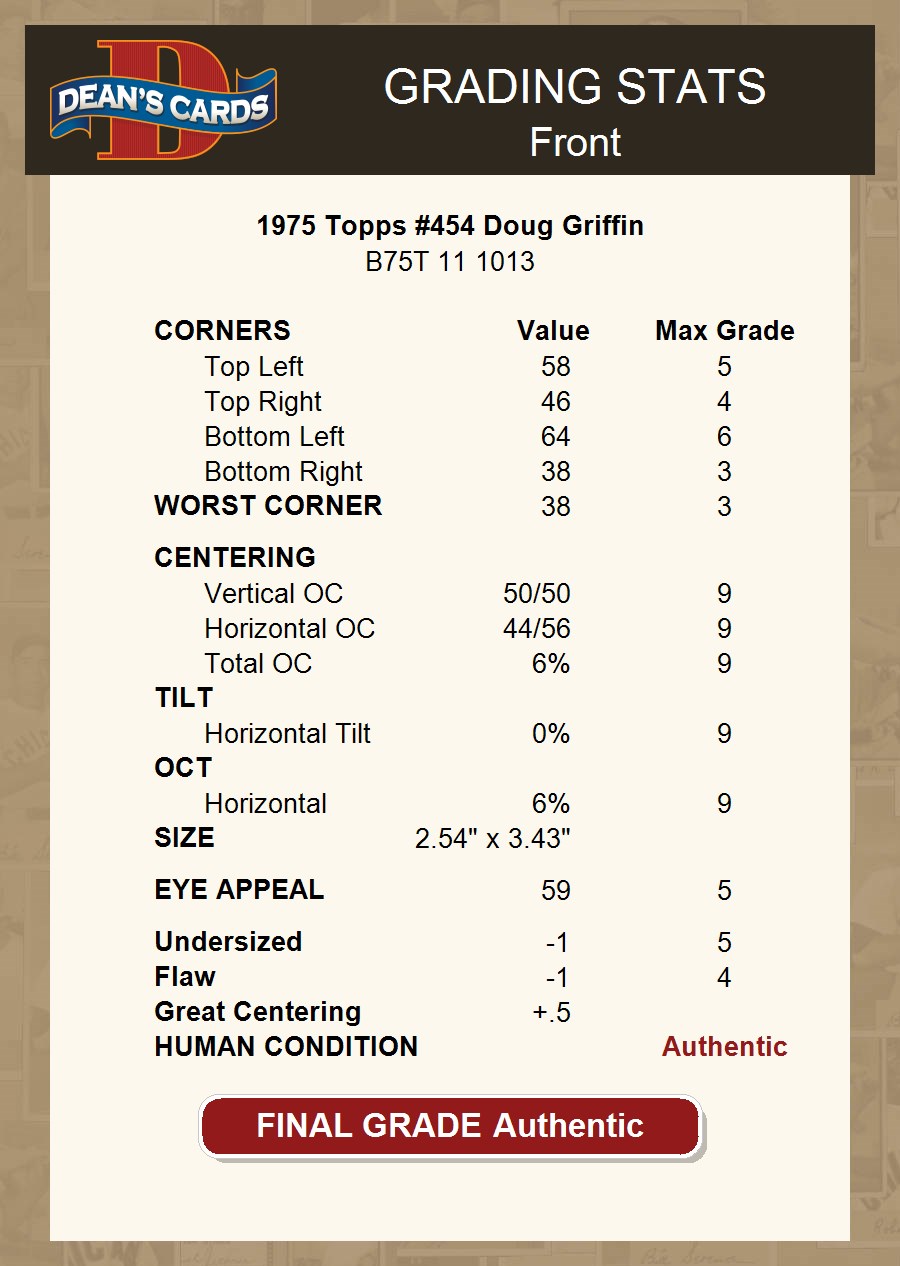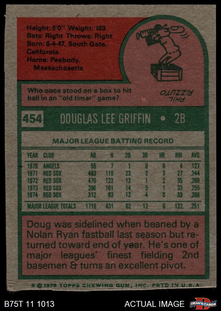 1975 Topps #454 Doug Griffin AUTHENTIC