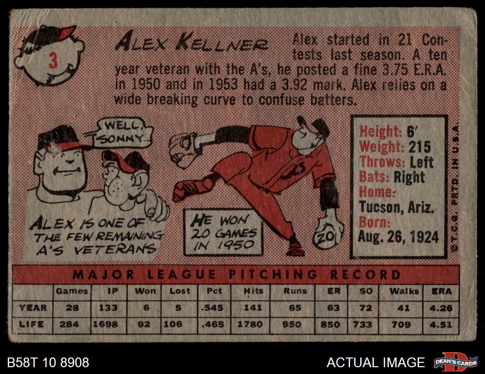 1958 Topps #3 Alex Kellner 1 - POOR