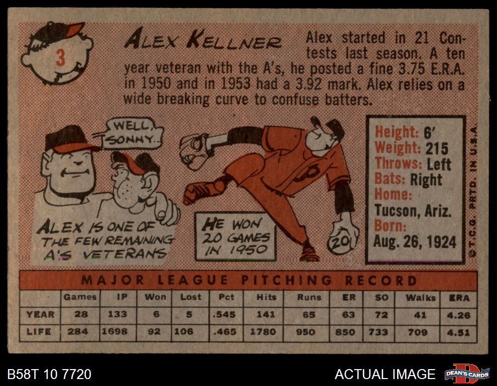 1958 Topps #3 Alex Kellner 4 - VG/EX