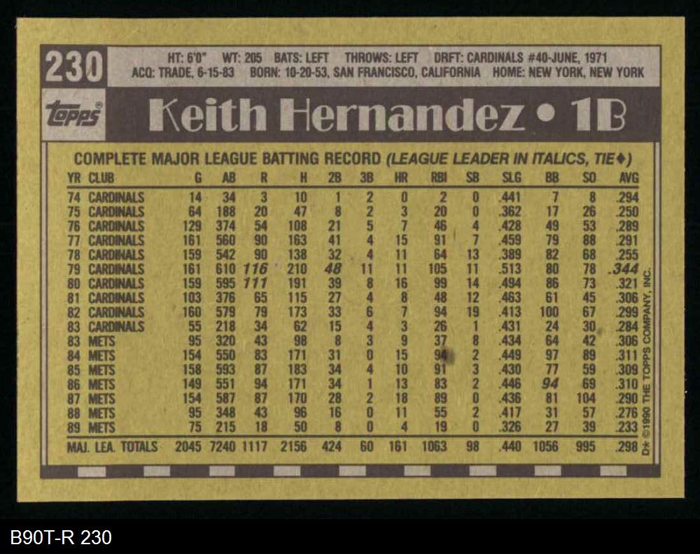 1990 Topps #230 Keith Hernandez