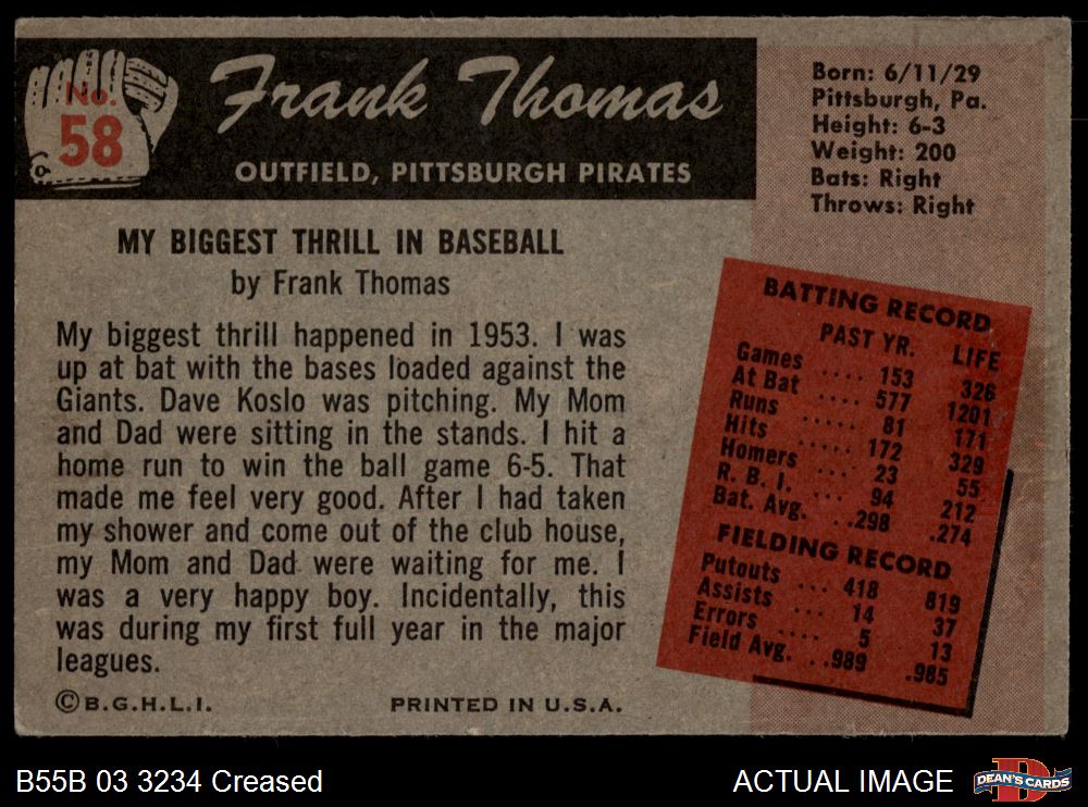 1955 Bowman #58 Frank Thomas Front Thumbnail