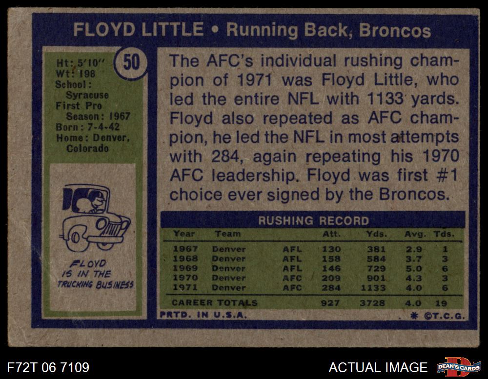 1972 Topps #50 Floyd Little AUTHENTIC