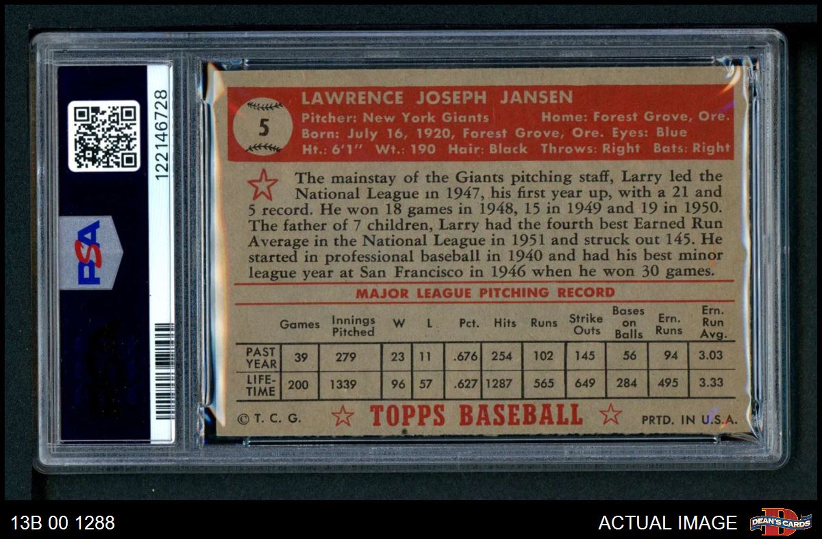 1952 Topps #5 Larry Jansen PSA 6 - EX/MT