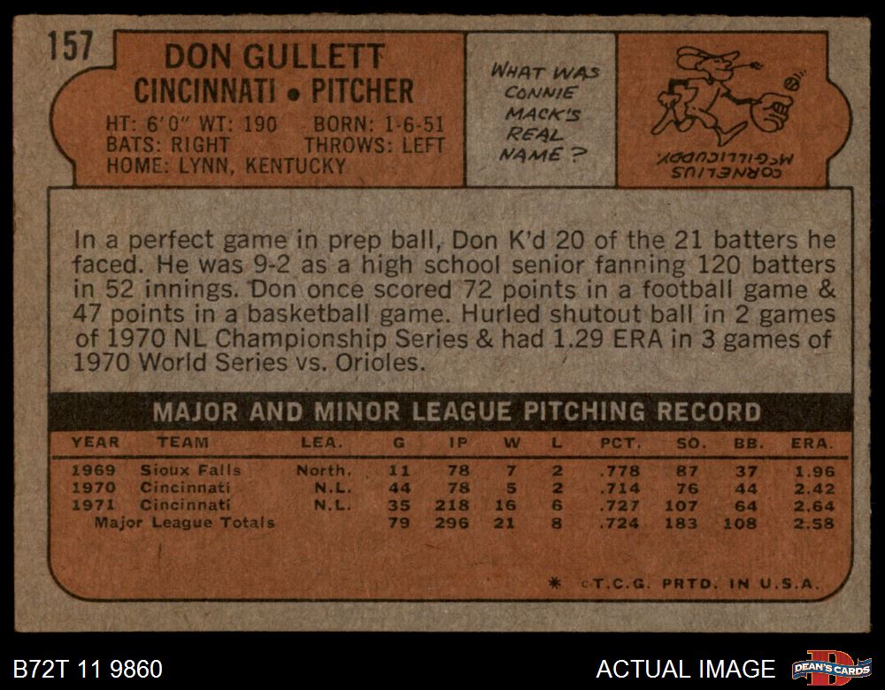 1972 Topps #157 Don Gullett 1.5 - FAIR