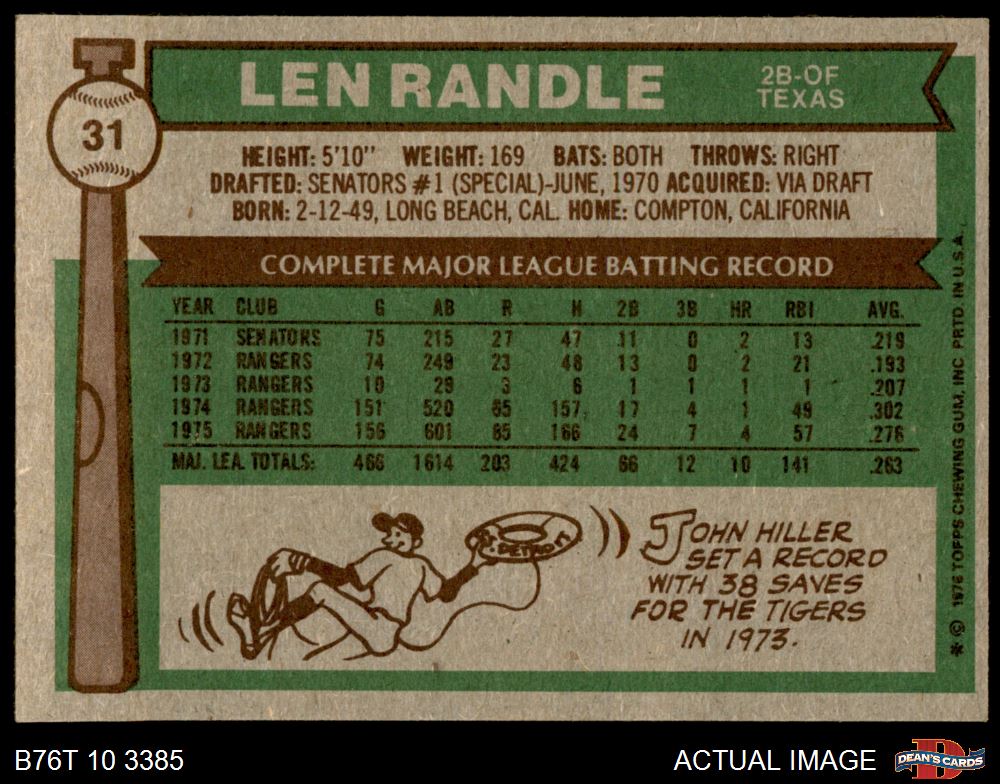 1976 Topps #31 Len Randle