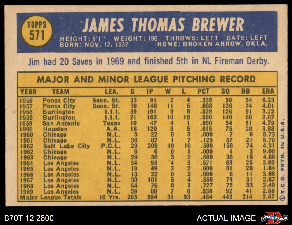1970 Topps #571 Jim Brewer
