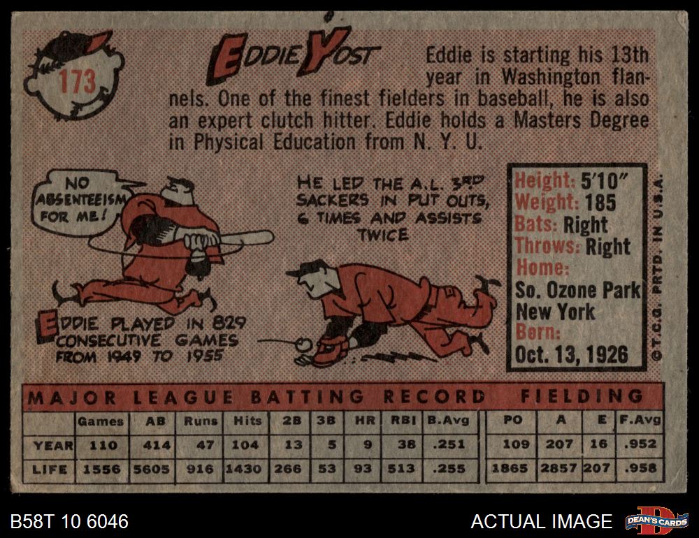 1958 Topps #173 Eddie Yost 3 - VG