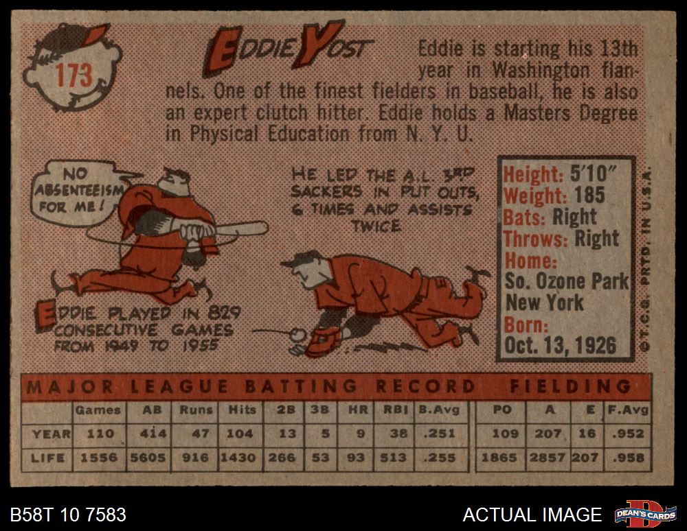 1958 Topps #173 Eddie Yost 6.5 - EX/MT+