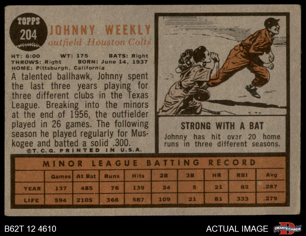 1962 Topps #204 Johnny Weekly 3.5 - VG+