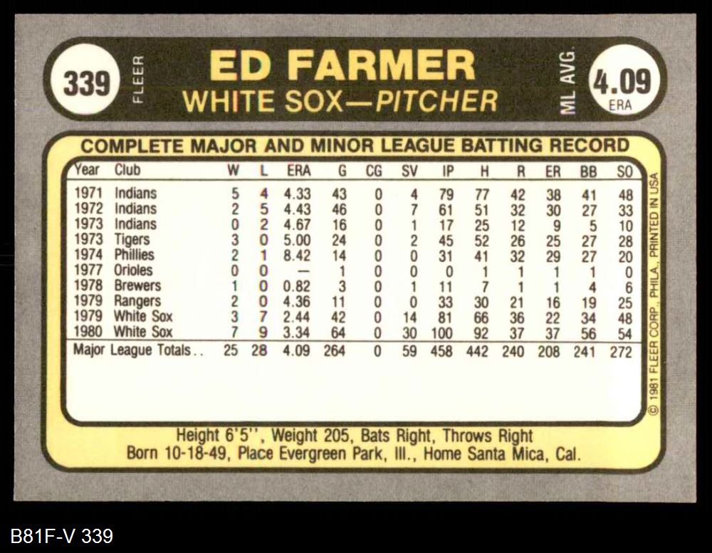 1981 Fleer #339 Ed Farmer 8 - NM/MT