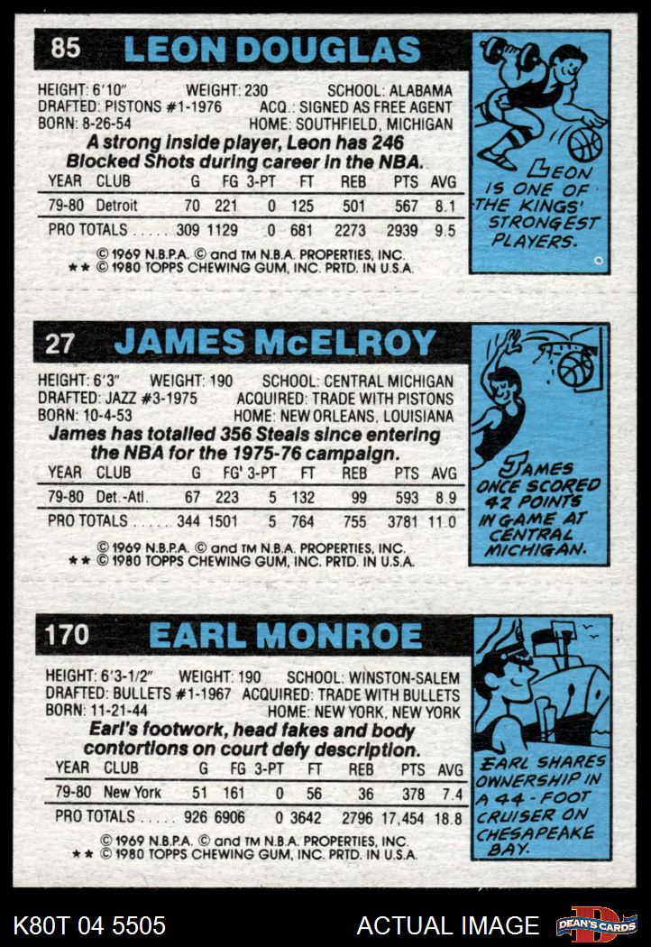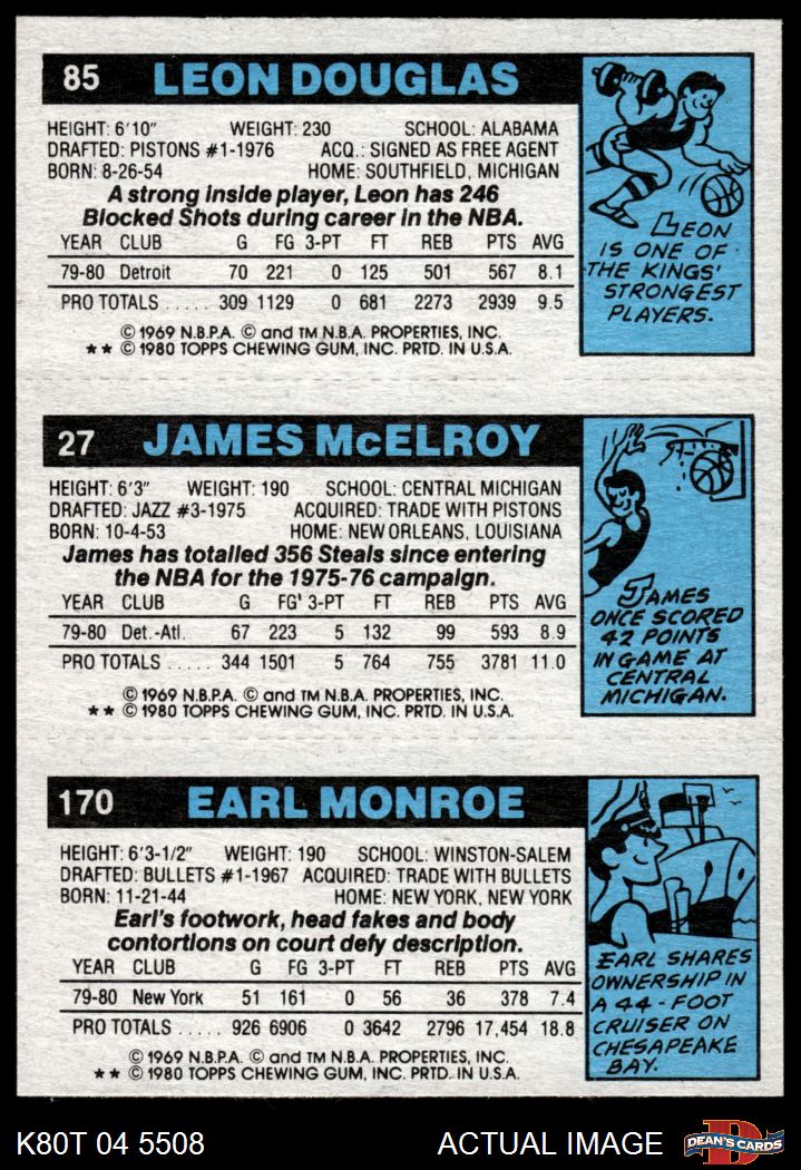1980 Topps - Earl Monroe / James McElroy / Leon Douglas 170 / 27 / 85 7 - NM