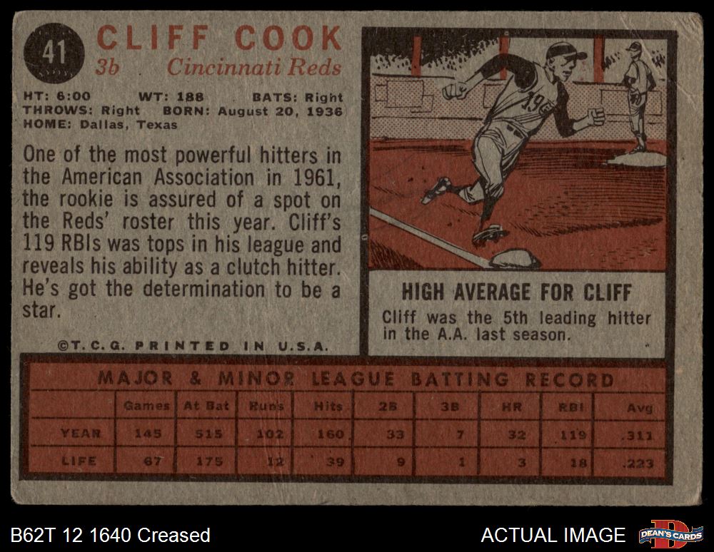 1962 Topps #41 Cliff Cook 1.5 - FAIR
