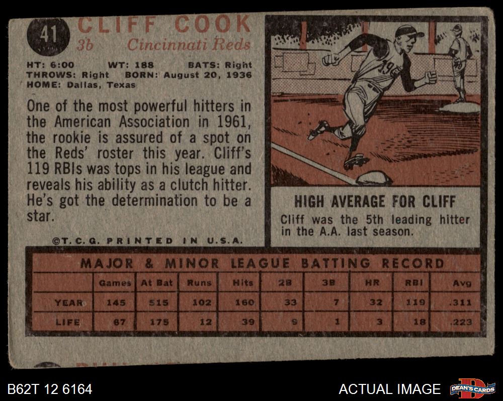 1962 Topps Baseball Cards (14,088 available)1962 Topps Reds (1,165 available)